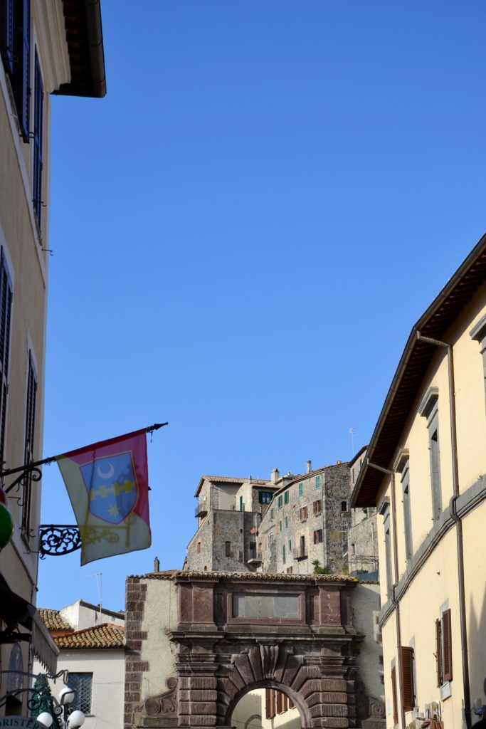 Porta Fiorentina con sullo sfondo la Rocca Monaldeschi della Cervara e il sottostante palazzo rinascimentale del cardinale Tiberio Crispo (oggi proprietà dei principi Drago)