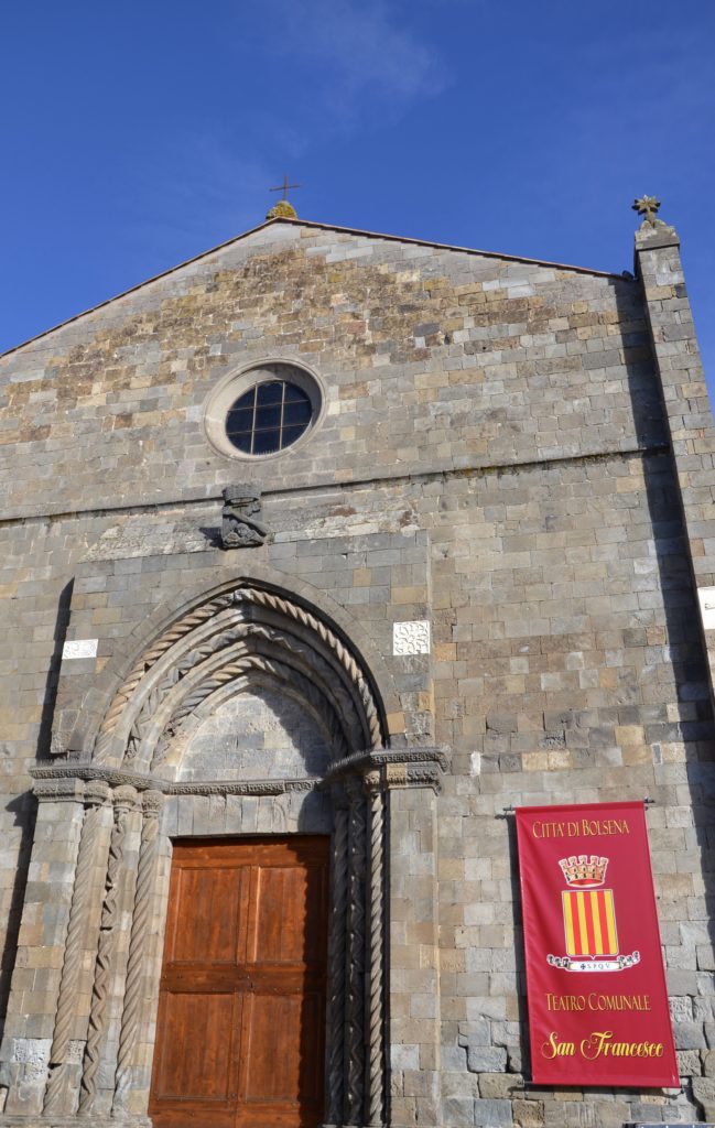 L’ex Chiesa di San Francesco (inizio XIII sec.- inizialmente in onore alla Natività di Maria Santissima. In seguito, quando dopo l’approvazione dell’Ordine Francescano, la chiesa fu dedicata a San Francesco)con al suo interno l’attuale Teatro comunale