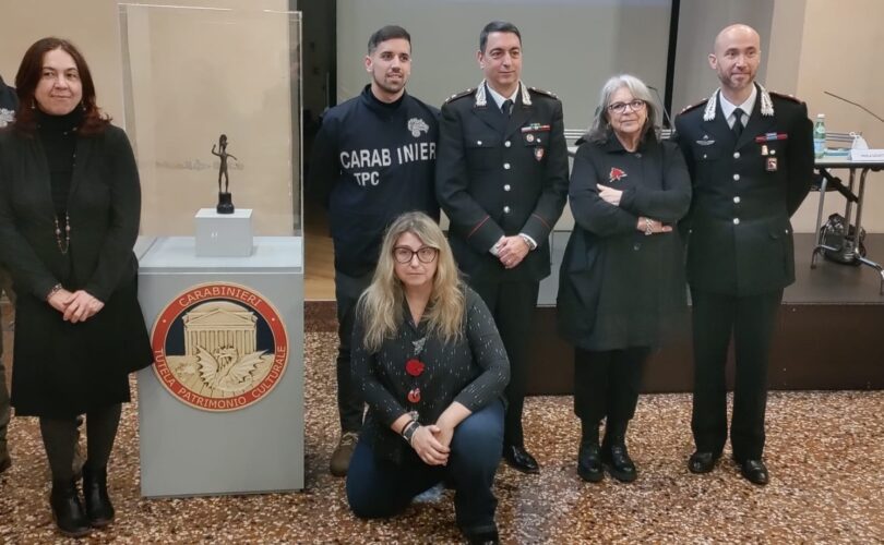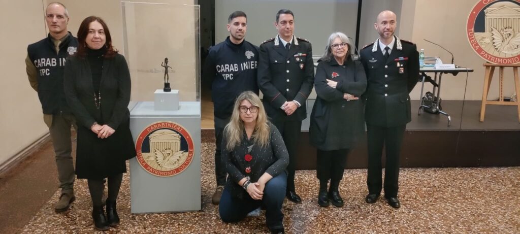 Il 19 dicembre 2025, alle ore 11.00, nella Sala Conferenze del Museo Civico Archeologico di Bologna, sito in via dell’Archiginnasio 2, il Comandante del Nucleo Carabinieri Tutela Patrimonio Culturale di Bologna ha consegnato alla Direttrice del Museo una statuetta in bronzo raffigurante un guerriero etrusco, parziale provento del furto perpetrato in danno del Museo Civico Archeologico di Bologna e denunciato in data 30 ottobre 1963.
