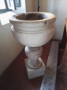 Le pareti interne presentano resti di affreschi eseguiti nel 1490 come testimonia l’iscrizione lungo la base dell‘abside.